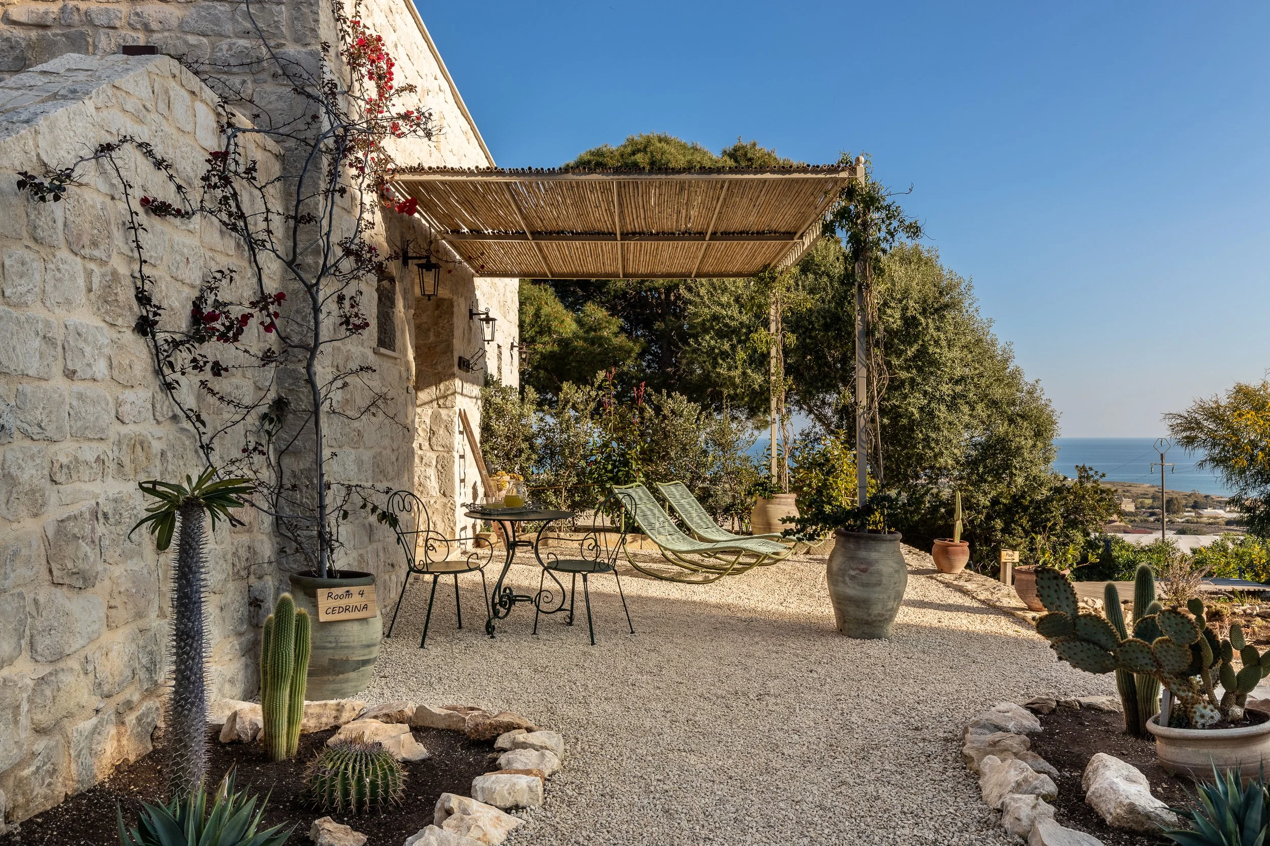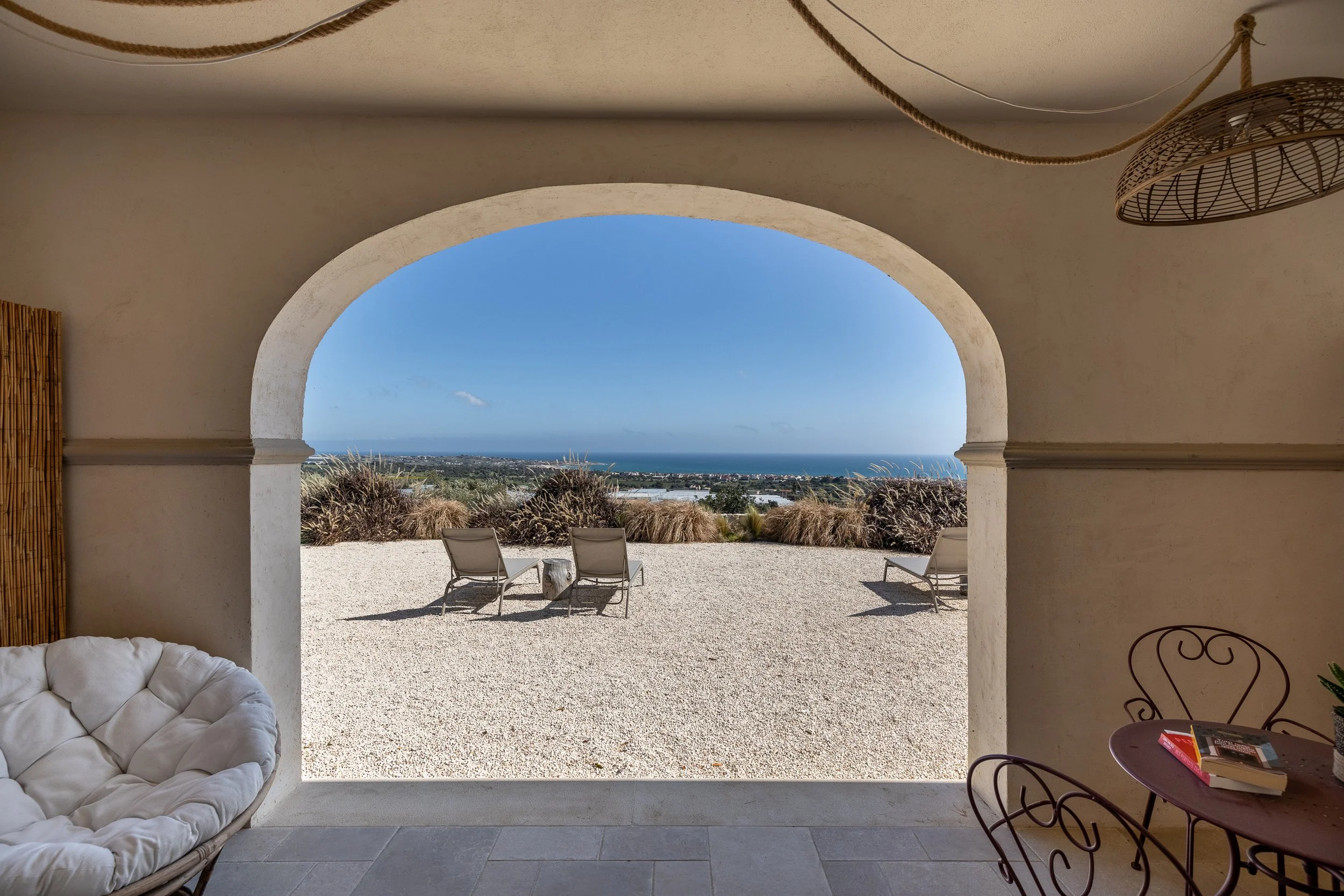 Roccaseta is a beautiful farmhouse nestled in the countryside of Sampieri, Sicily, where rolling land meets the deep blue of the sea. Surrounded by olive trees, carob trees, and prickly pears, the air is filled with the familiar scents of Mediterranean scrub, grounding you immediately in the rhythm of this place.